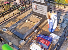 Когда памятник был изготовлен, идём на место захоронения. На данный момент на могиле находится лишь холмик, на котором растут цветы.
