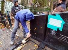 После чего водрузили новые надгробья на подготовленные основания.